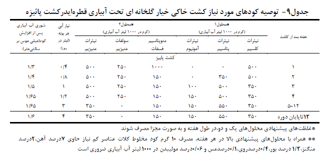 نیازهای کودی خیار گلخانه‌ای بر اساس آزمون خاک و دوره رشد گیاه به طور خالصه در سه مرحله تأمین می‌شود: